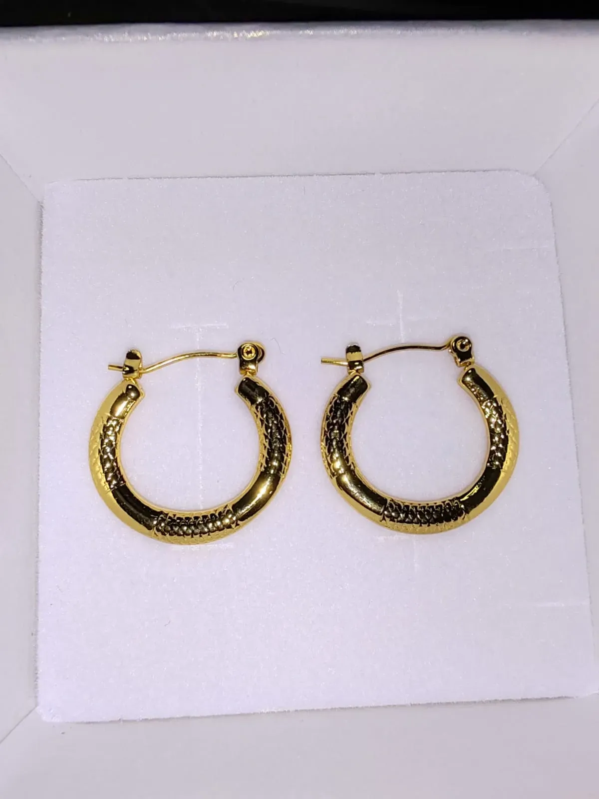 Pendientes de diseño geométrico con acabado martillado en tono dorado tipo oro de 18K, elaborados en acero inoxidable de alta calidad. Su forma circular con textura artesanal les da un look moderno, elegante y atemporal.